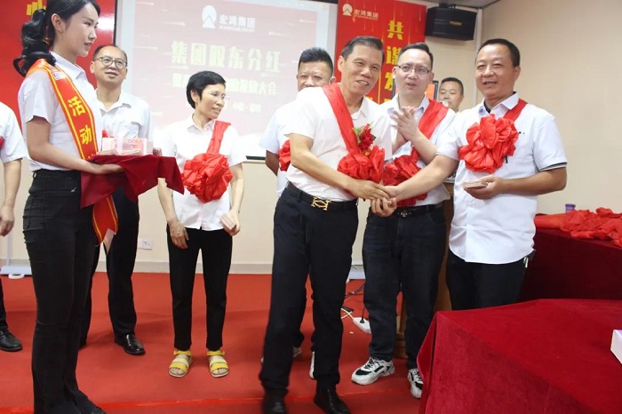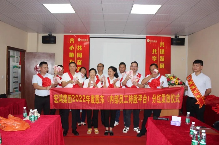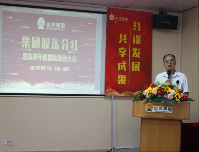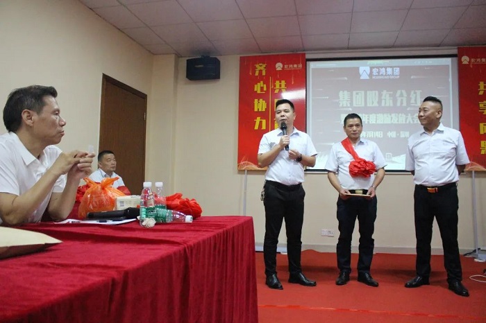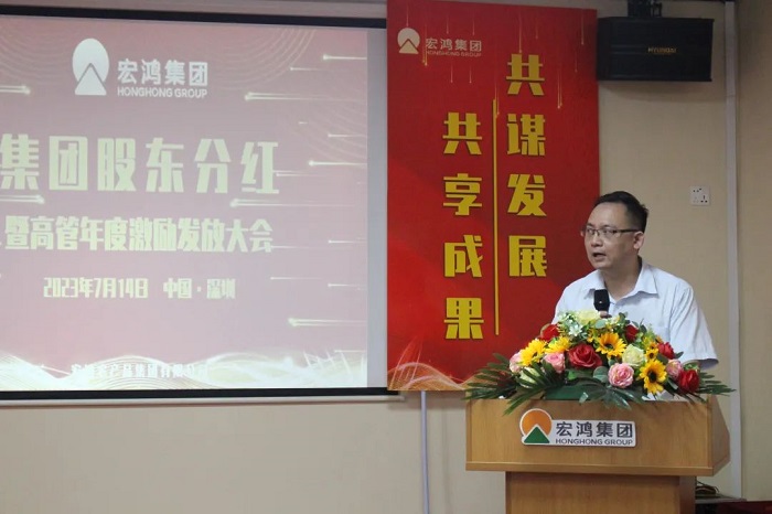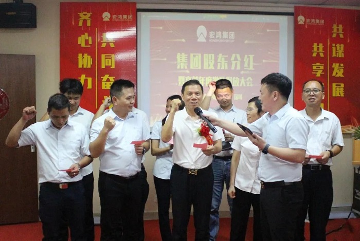 宏鸿作为经营稳健、发展前景广阔的好公司,广大员工、内外部合伙人认可和信任的好平台,谋发展、有担当、敢分享的好企业,举办这场“集团股东分红暨高管年度激励发放”大会,旨在分享宏鸿人在过去一年的丰硕成果,我们共同诠释了集团关爱员工、与员工共同发展、共同分享的文化内涵。未来,我们也将用昂扬斗志和真抓实干,在各自的岗位上发光发热,为集团的大发展共同努力和奋斗!