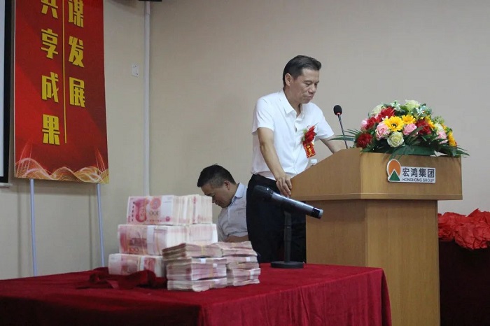 有成果就要肯定,有奉献就得有回报,这是宏鸿集团一直倡导的分享理念,集团用无上的仪式和实际的行动践行了这一理念。正如大会主持人叶中华总说的那样:
