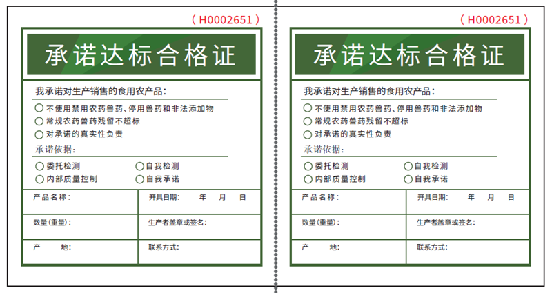承诺达标合格证可以采取手工填写、打印等方式开具,也可将承诺达标合格证与农产品质量安全追溯标签等整合,采用信息化手段开具。宏鸿便是采用信息化手段,整合合格证和溯源码信息录入广东省农产品质量安全智慧监管平台,由系统自动生成承诺达标合格证。方便追溯和查验。